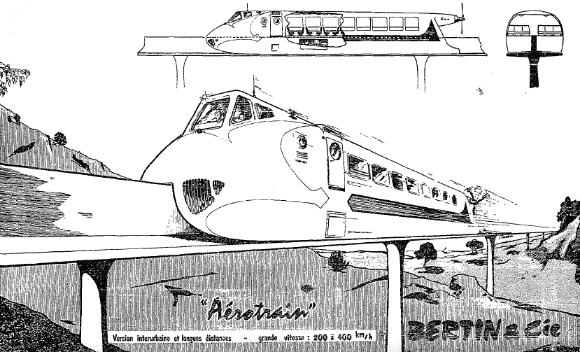 « ... Il est de plus en plus question de sortir du domaine expérimental ses Terraplane, Aérotrain et Naviplane. Le premier a fait son apparition, à Angers, en novembre dernier, par les soins de l'École d'Application du Génie. Quant à l'aérotrain, des études ont été faites, il y a quelques mois, pour la création éventuelle d'une ligne Paris- Créteil, en prolongement du métropolitain. |