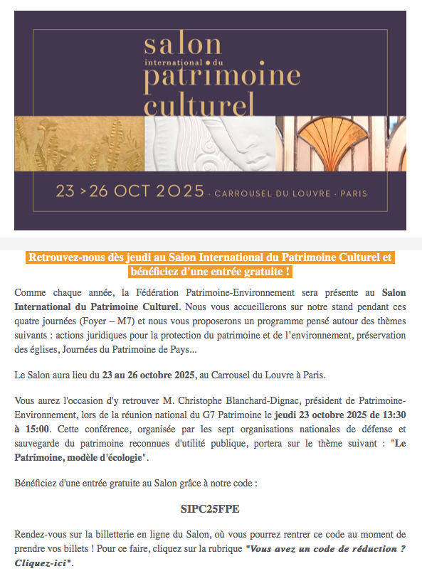 La Fédération Patrimoine-Environnement est heureuse de vous annoncer la publication du septième numéro des Cahiers de Patrimoine-Environnement !