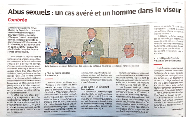 Sachez que l'Amicale a découvert ainsi de trop nombreuses victimes de divers prédateurs, laïcs ou prêtres, et qu’elle poursuit sa propre enquête interne (à l'aide de ses archives et de son réseau d'anciens combréens des cours 1945 à 2005) pour contribuer à la manifestation de la vérité, en liaison, d'une part, avec la Justice déjà resaisie depuis avril d'une dizaine de nouvelles plaintes pénales à l'encontre d'un ancien surveillant général des années 1970 à 1990 et, d'autre part, avec le Diocèse d’Angers et l'Instance Nationale Indépendante de Reconnaissance et de Réparation pour permettre une éventuelle indemnisation des victimes d'abus qui auraient été commis par des membres du clergé.