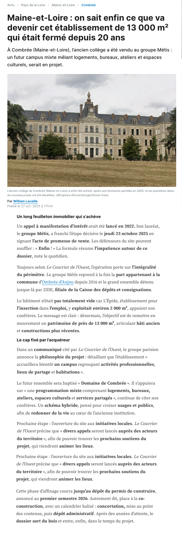 Depuis 2020, nous avions l’habitude d’organiser notre annuelle Fête des Journées Européennes du Patrimoine (JEP) au sein même du Collège de Combrée que nous voulions honorer.