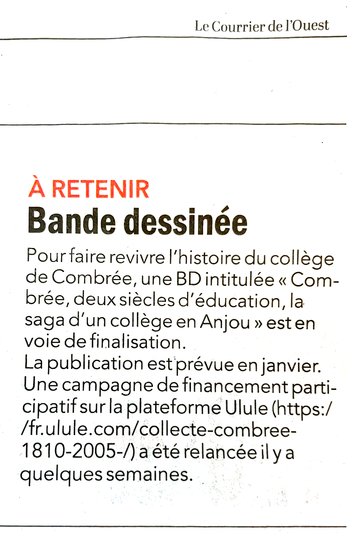 CourrierOuest    Édition du 17 nov : Invitation à collecter pour la BD